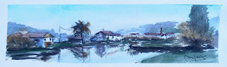 Eusebio Llorca, Cuadra Sánchez, Gonzalo Gil, Isabel Hernández, Enrique Mijares, J.M. Puente y Ángel Suárez, poniendo oídos sordos a la llamada de la molicie trabajaron en El Salín, a la vera de Villaviciosa, mientras en el río el tráfico se intensificaba con el avance del sol desfilando ante los pintores patos, cercetas, raitanes, peces varios, piragüistas y hasta un caballo. Todo esto puesto en una coctelera y agitado da para un cuadro teatral.